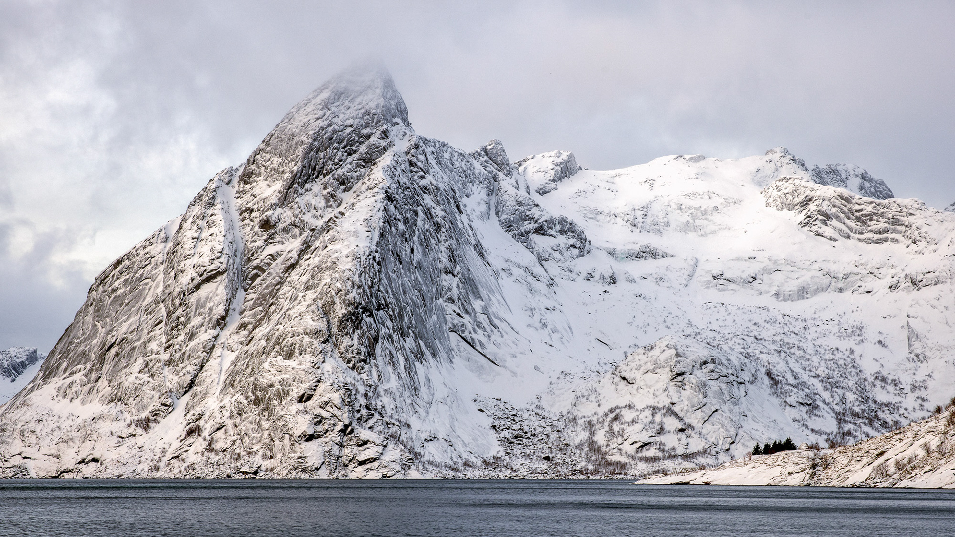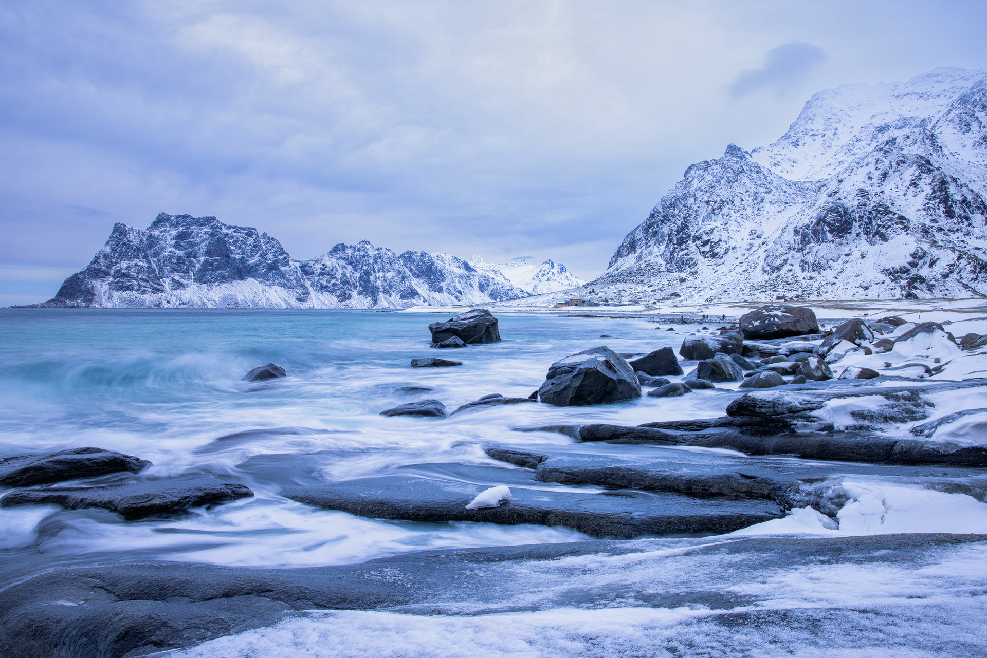Part of the Fredvang Bridge leading towards Volandstind Mountain (aka Gandalf's hat)